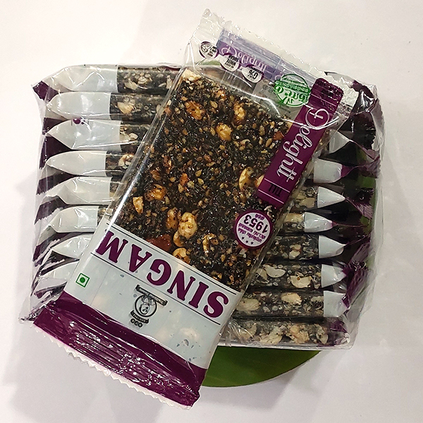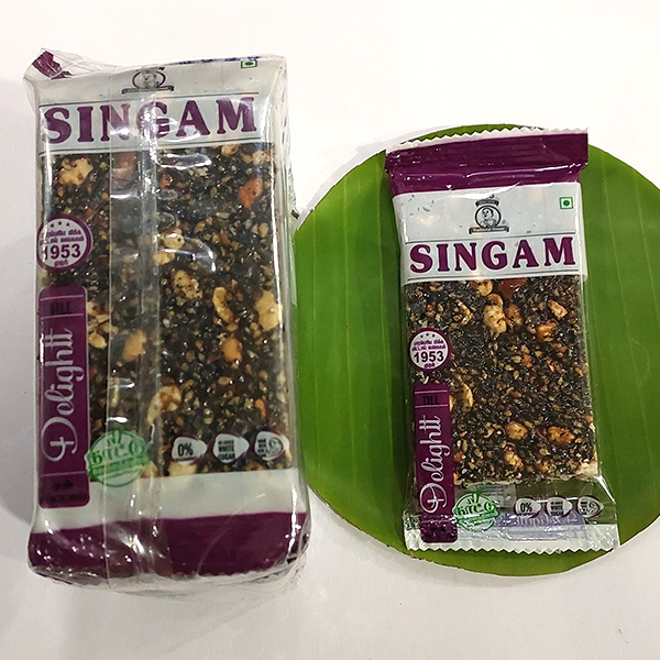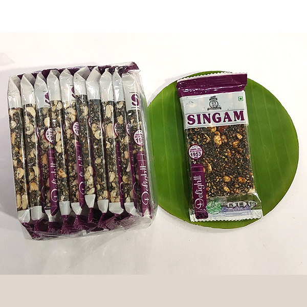 எள் மிட்டாய் – கருப்புஎள்,நிலக்கடலையுடன் நாட்டு வெல்லம் மற்றும்ஏலக்காய் சேர்க்கப்பட்டு தயாரிக்கப்பட்டது.